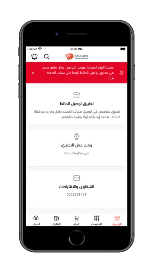 تطبيق توصيل الحائط يسهل لك توصيل جميع طلباتك من مطاعم وكوفيهات وصيدليات وغيرها التي تناسب حاجتك وفي اسرع وقت.