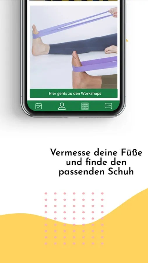 - Hier geben wir dir ebenfalls Unterstützung und du erhälst Tipps, um deine Fussgesundheit zu steigern oder zu verbessern. Lerne mit der App wie du einzelne Übungen ausführen solltest und Chate bei Bedarf mit einem unserer Experten.