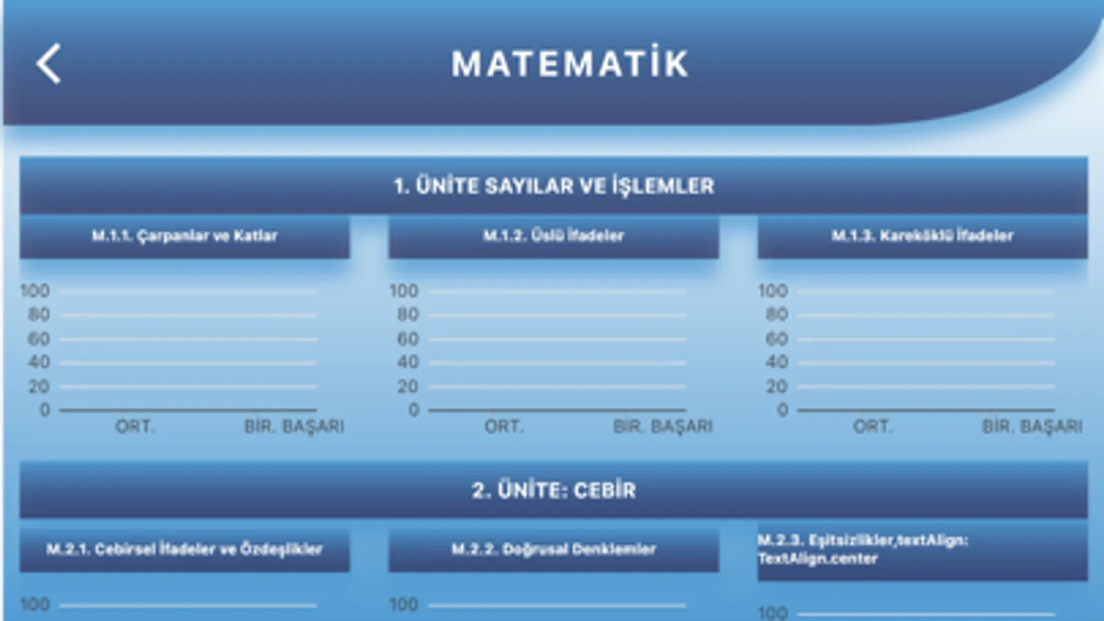 Uygulama, aynı zamanda tamamlanan tüm sınavları konu bazında değerlendirerek raporlar oluşturmakta, ders ve konulara göre oluşturulan grafikler ile bireysel başarıların genel ortalama ile karşılaştırmasını sağlamakta ve bireysel gelişimi takip etmede veri kaynağı oluşturmaktadır.
