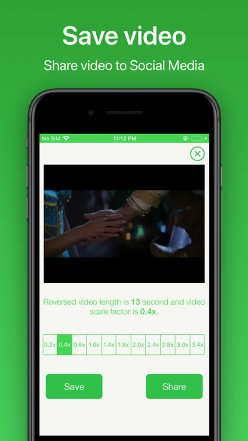Just select your video, see the result in real time and save to camera roll and export to social media with a single tap!