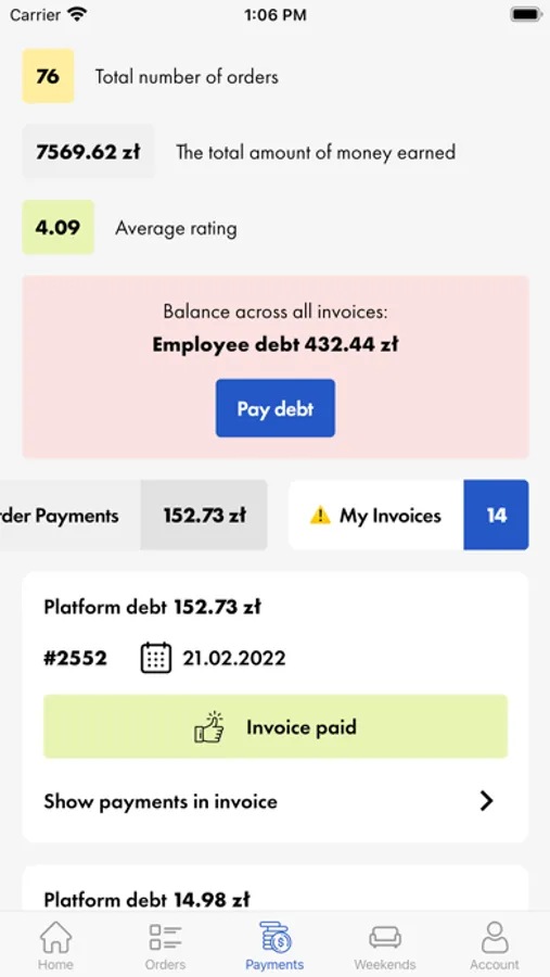 App allows you to make your own schedule, choose the type of services you provide, see feedback from the client, your performance statistics and cash balance.