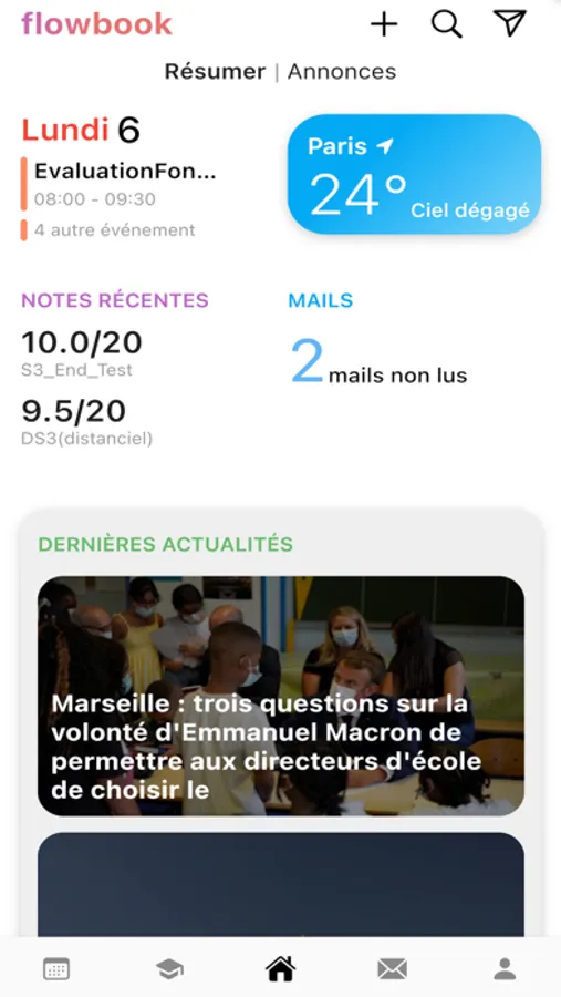 Flowbook rassemble tous les services dont vous aurez besoin lors de vos études supérieures en une seule application : emploi du temps, notes, mails, rappels. En plus, elle intègre en plus une interface sociale pour vous permettre de communiquer avec vos amis et d’explorer notre communauté.