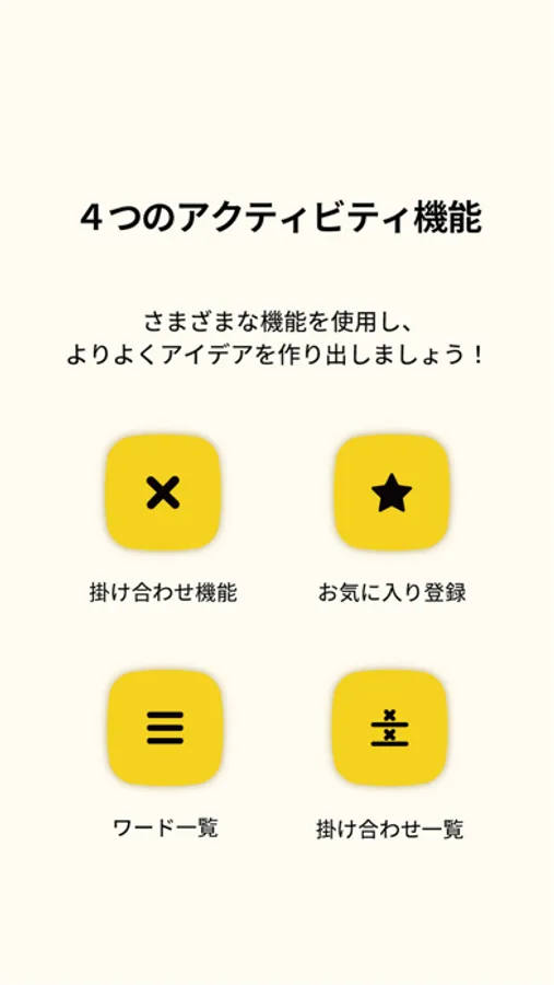 ものづくりをする上で重要なアイデア出しをサポートするアプリ。新規制、オリジナリティのある、真新しいアイデアを作り出したいと言う方、また、新しい解決方法を導き出したいという方が使うことができます。