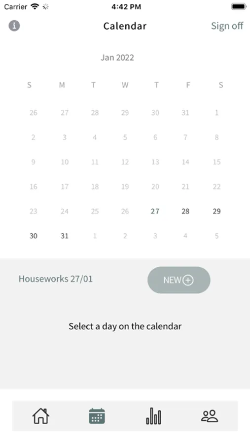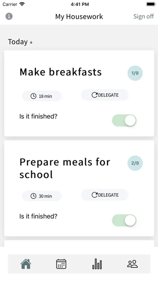 A partir daqui, a app assume que as tarefas atribuídas são desempenhadas (diária, semanal, mensal ou anualmente, dependendo da tarefa) a não ser que a pessoa utilizadora as marque como “Não realizadas” ou a atribua à outra pessoa, pontualmente.