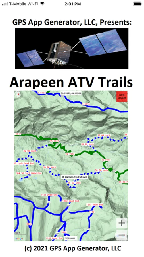 50 and 66 inch trails are dashed and noted in the App. Trails are color coded as to difficulty, but should not be relied upon, as one days weather can change its difficulty, and, vehicle, and abilities of the driver also play a part. Do not go forward on any trail you would not want to go back over. Keep the Trails clean, if you bring it in, take it out.