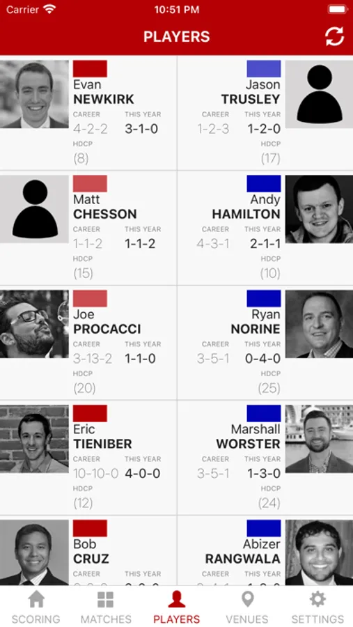 Use AllSquare to setup matches, track live scoring, share highlights, and view historical records of players on your buddies trips.