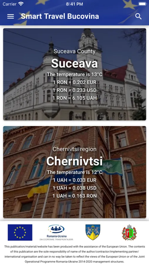 The Smart Travel application aims to provide useful information and promote culture and tourism for Suceava County and the Chernivtsi region.