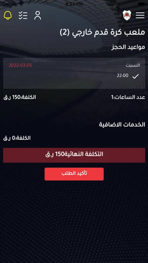 Al Rayyan PG application displays the available stadiums for rent and the times for each stadium as well as the services available with each one, where you can register your account and book the playground/stadium at the required time and date and add the required service (Optional).