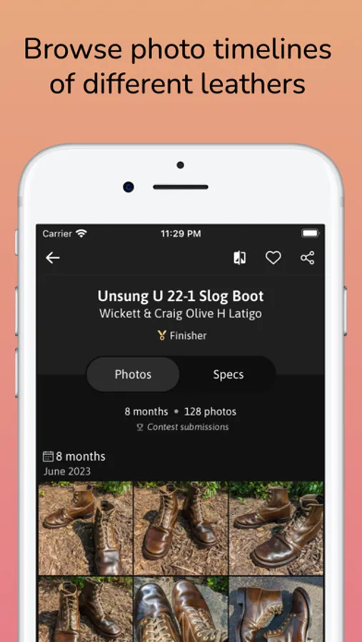- Browse photo timelines to discover the aging and progression of different boot and shoe leathers.