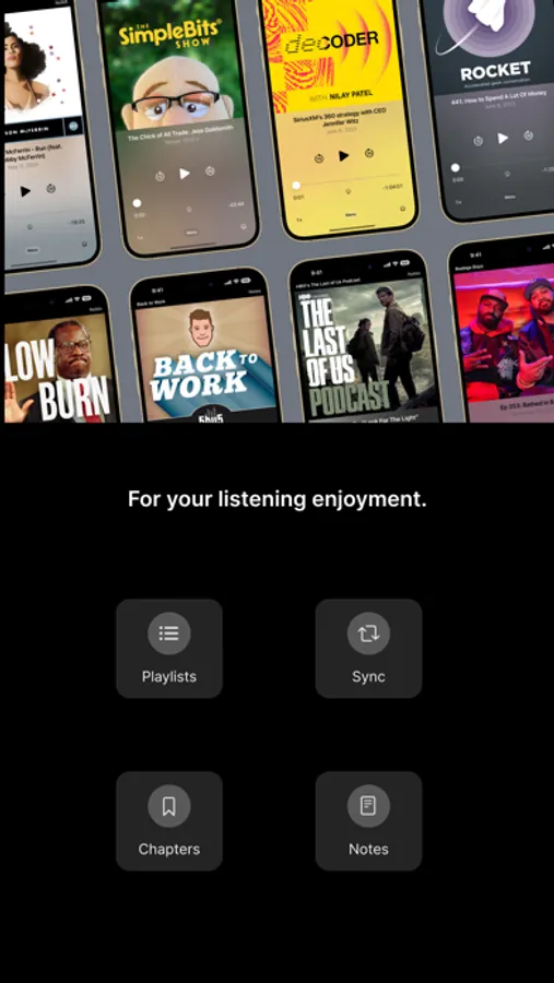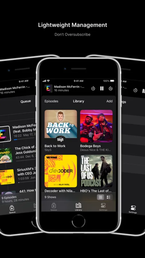 Just the features you need to actually listen to and enjoy the shows you love, avoiding complexity and bloat.