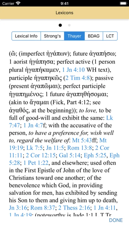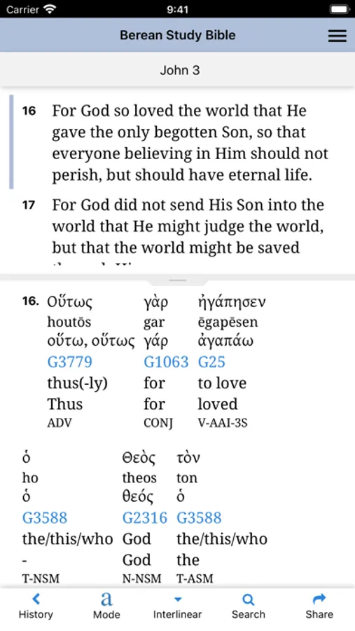 The eRhema Bible App enables users to explore the Bible in its original languages. Its features include