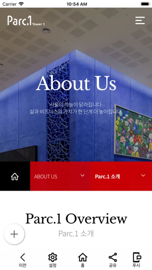 최첨단 시설을 갖춘 초고층 오피스타워, 파크원 타워1을 편리하게 이용할 수 있는 모바일 어플리케이션입니다.