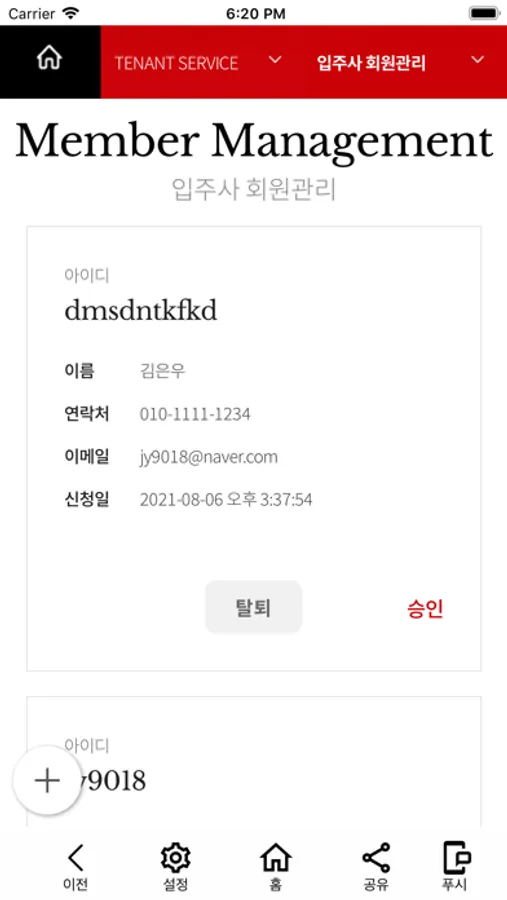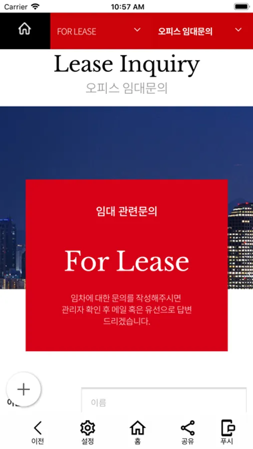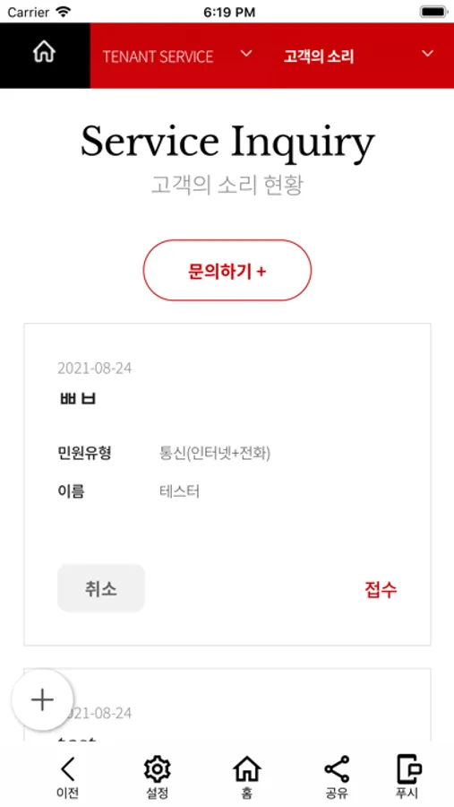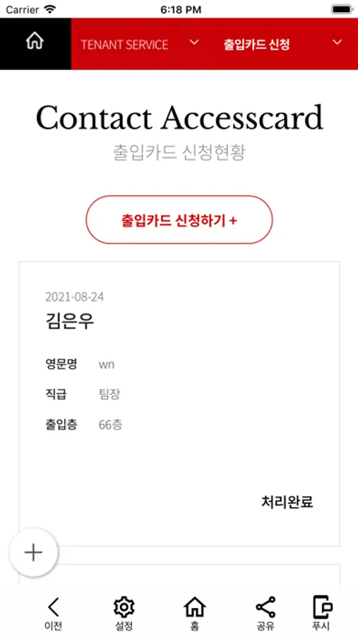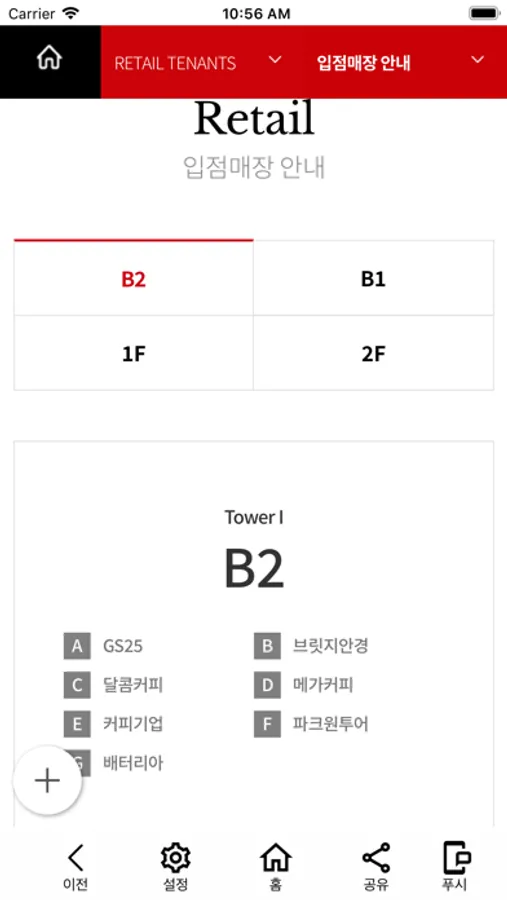 타워1에 입주해 계신 입주사 임직원 여러분을 대상으로 본 모바일 어플리케이션을 통해