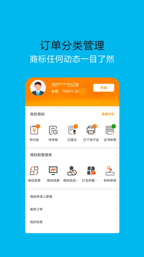 2、在线商标续展,商标变更,在线商标异议,商标撤三,商标无效申请,同时可以方便提交商标异议撤三无效答辩服务;