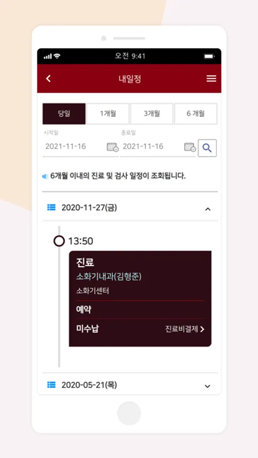 병원에서의 진료, 검사 일정을 한번에 볼 수 있습니다.