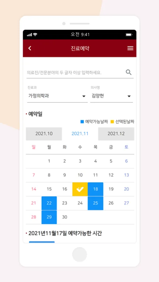 모바일앱에서 진료예약을 간편하게 할 수 있습니다.