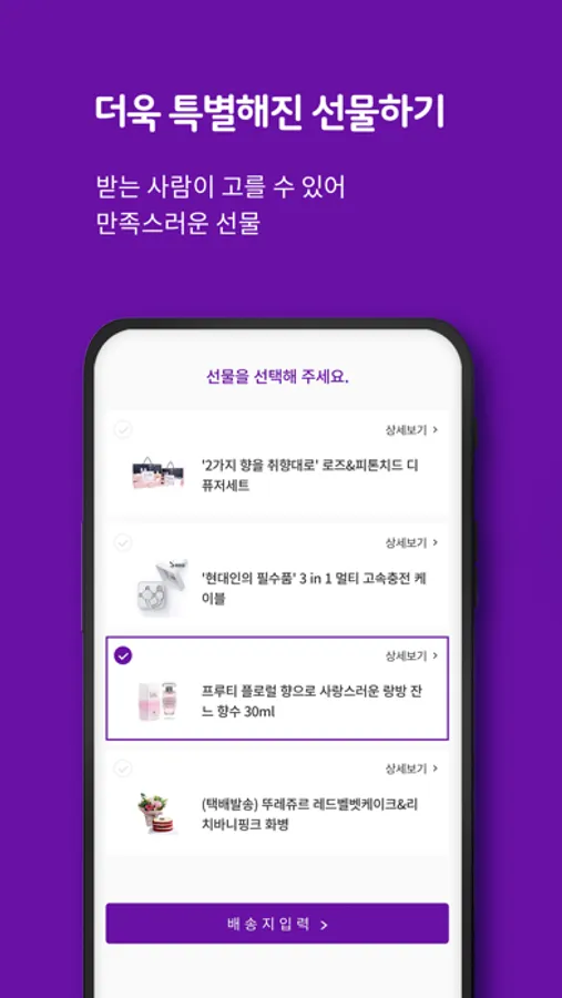 선물하는 분이 지정해둔 선물 선택지 중, 받는 중이 원하는 선물을 선택합니다.