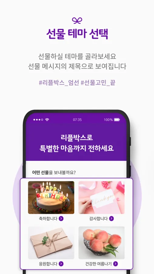 주는 사람도, 받는 사람도 만족할 수 있는 "리플박스"를 통해 선물하세요.