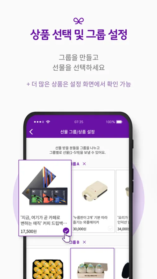 받는 분을 여러 개의 '그룹'으로 나누어 그룹별로 다른 선물을 보낼 수 있습니다.