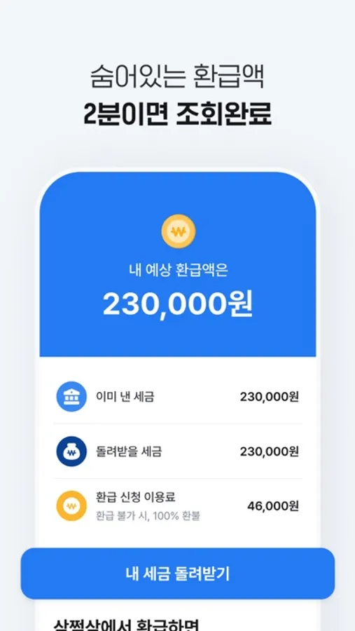 쉽고 편리하게 세금 신고하고 숨어있는 돈 1원까지 찾아드려요.