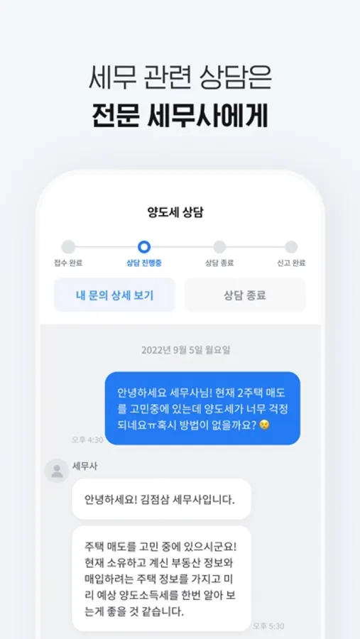 - 언제든지 인증된 전문 세무사에게 1:1 양도소득세 상담을 남길 수 있어요.