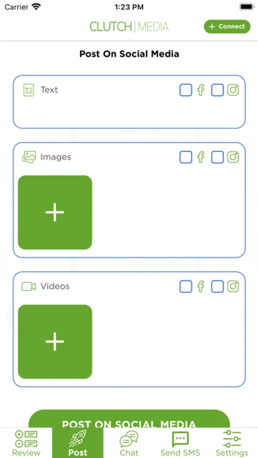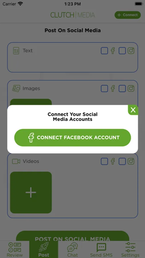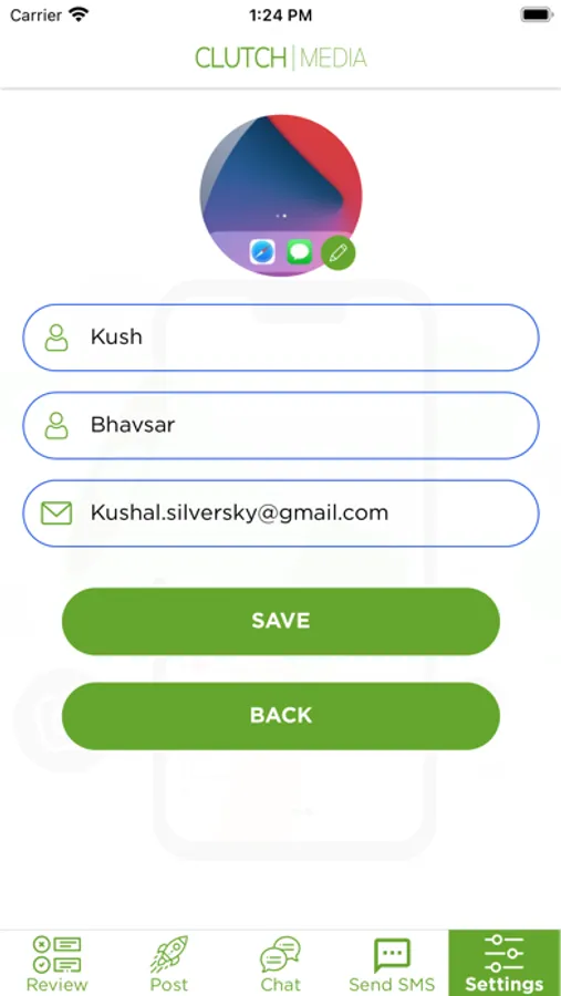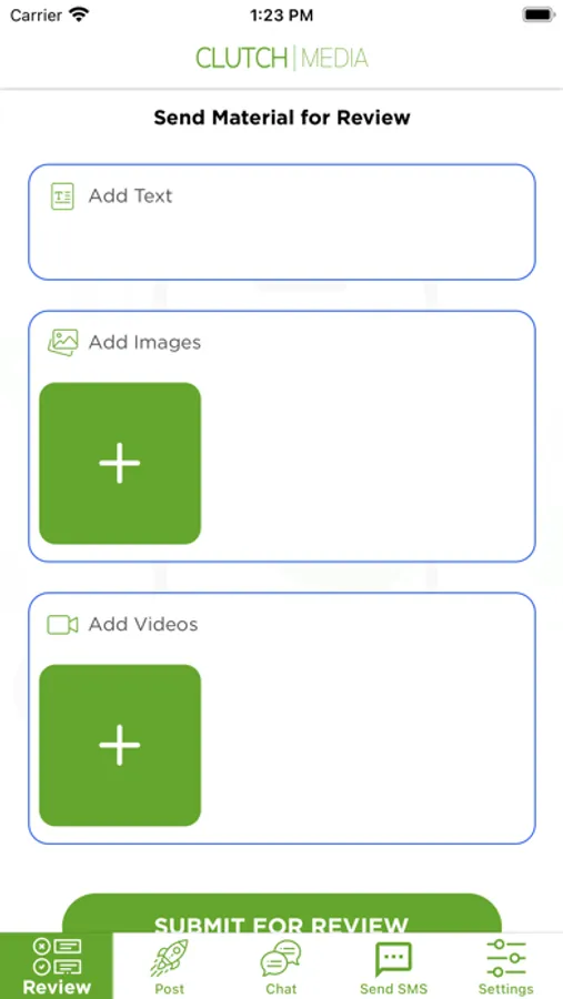 Review: Users will upload content (photos or videos) to be reviewed by Clutch Media account manager to be posted on users business social platform.
