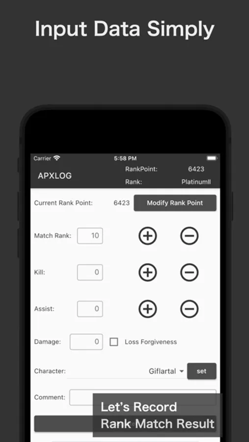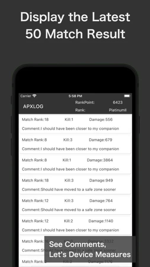 This is the Battle Record App for FPS Game corresponds to Apex Legends Rank Match.