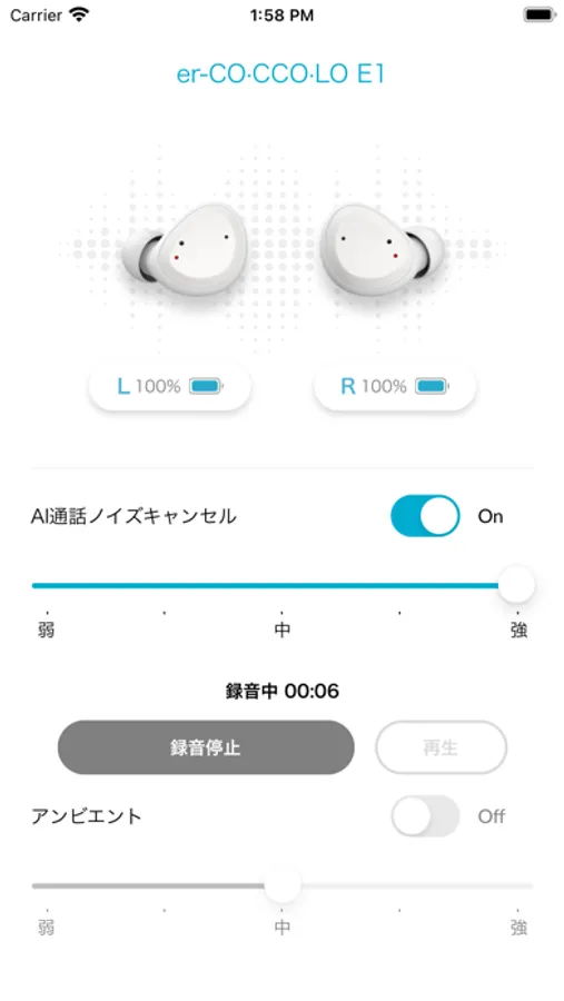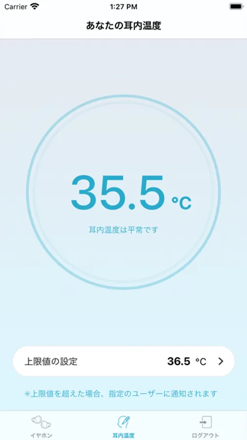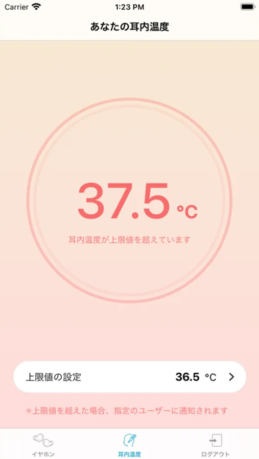 このアプリでは、イヤホン制御と耳内温度確認の2が出来ます。