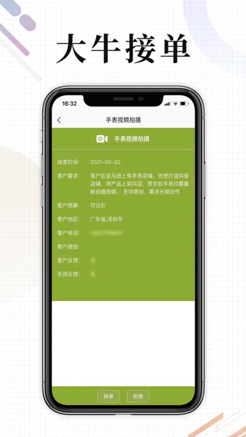 大牛接单是大牛企服旗下的客户线索管理工具,便于高效对接客户的一款接单平台。