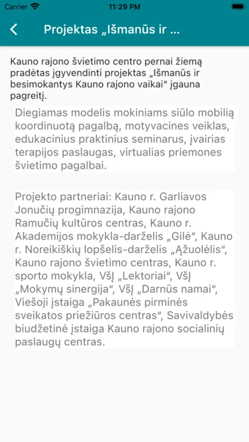 Projekto tikslas – didinti mokinių, turinčių specialių ugdymosi poreikių, įtrauktį į švietimo sistemą, skatinti mokinių ugdymąsi, teikiant koordinuotą pagalbą, kelti jų motyvaciją, siekiant sumažinti anksti iš švietimo sistemos pasitraukusių ir bendrojo ugdymo programos nebaigusių asmenų skaičių Kauno rajone.