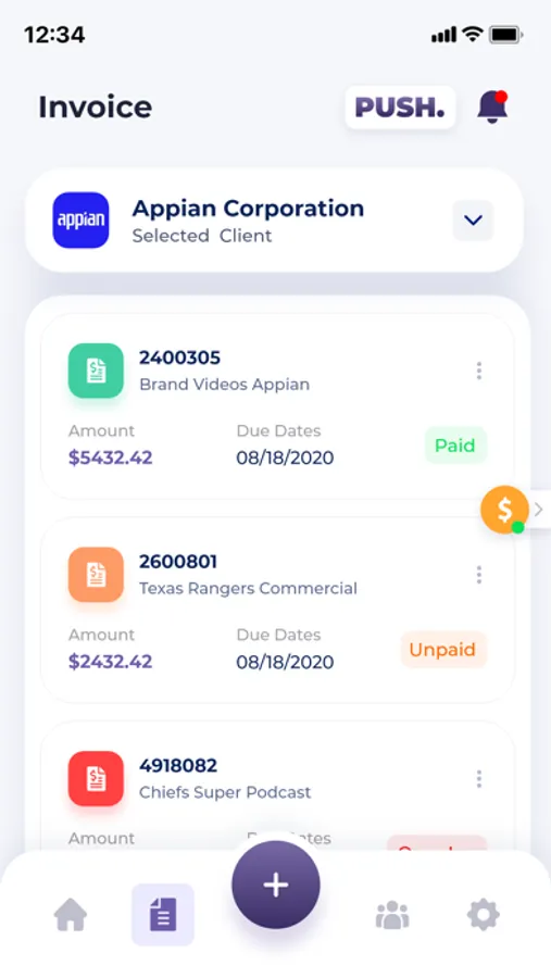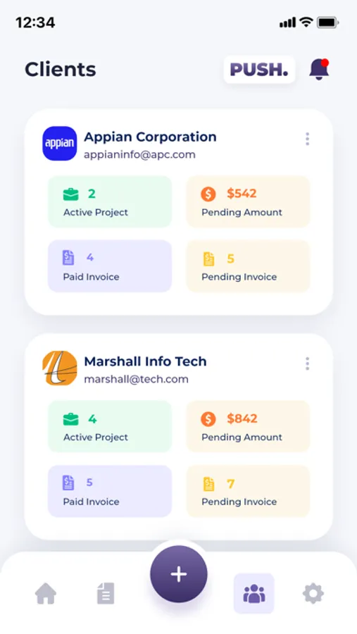 2) PUSH. empowers you with key business analytics, client & project management, file sharing, and e-invoicing.