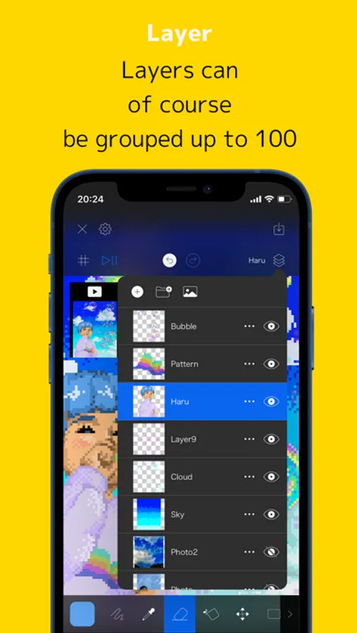 In addition to the layer function, there are also functions such as layer grouping and blend mode.