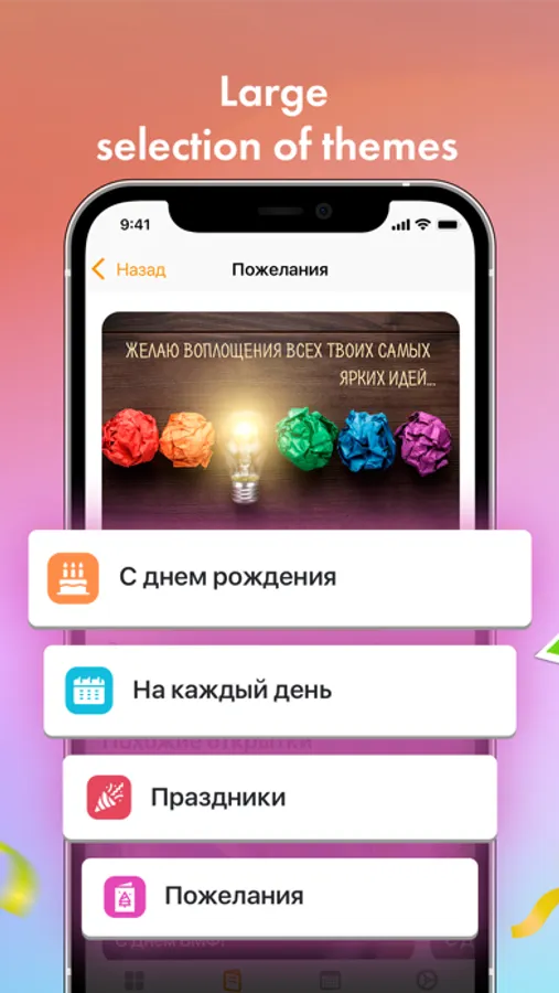 Sending a card is very simple. Just download Gifka, install it on your phone, select a card in the desired category of celebrations and click send. Everyone will be full of positive emotions!