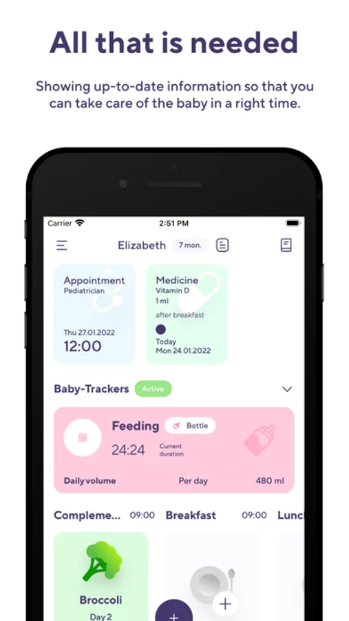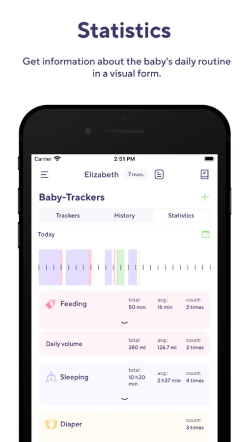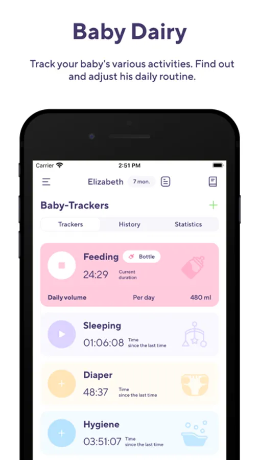 * The application covers various areas of a child's life with the help of Baby Trackers: sleep, feeding, hygiene and other daily activities.