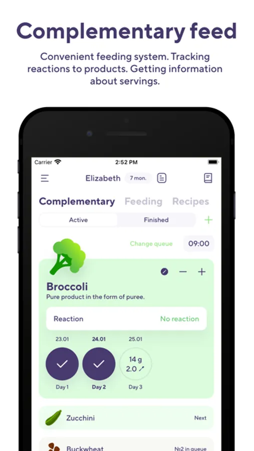 * Note the reactions to the introduced products. The app helps you record baby's reactions to foods so you can easily pick them up in the future and avoid unnecessary worries and inconvenience.
