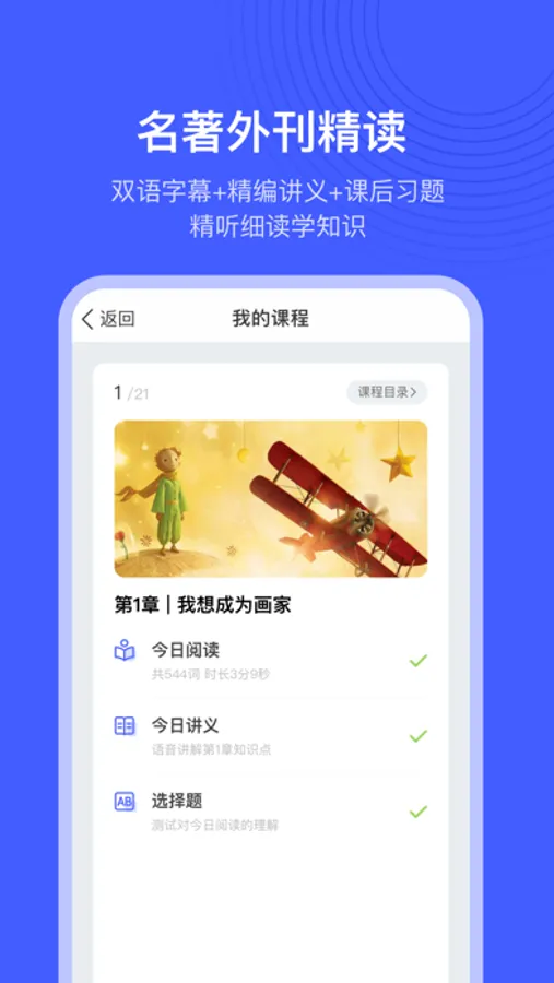 精听党:名著原声朗读,高亮双语字幕,结合干货知识点讲义和课后习题巩固,再也不用担心名著读不懂啦。
