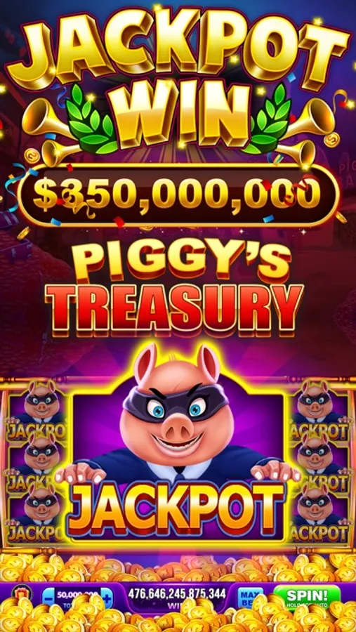 *Piggy's Treasure - Play peekaboo with our amazing Piggy's Treasury machine. Grab maximum coins with Piggy's respin streak going and win quick Jackpots!