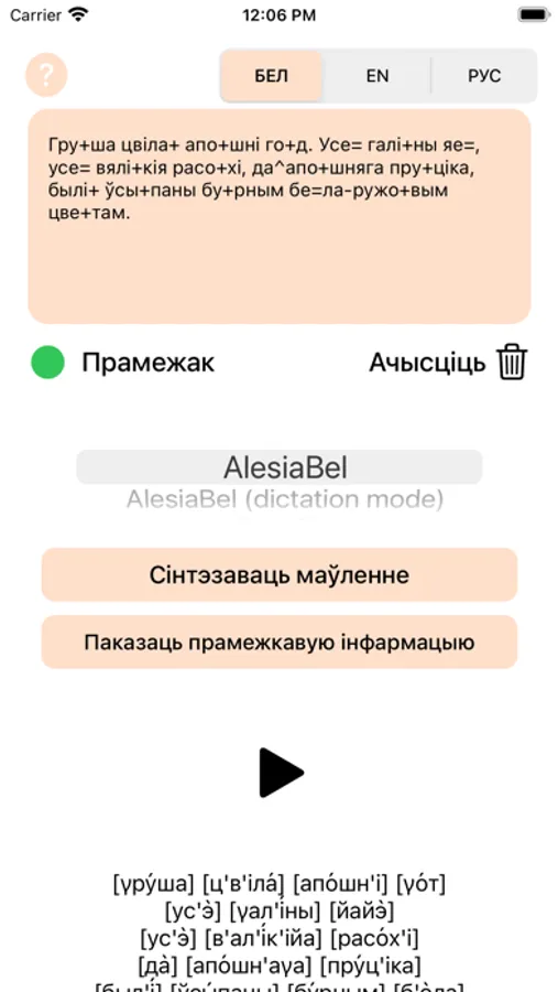 “Text-to-speech synthesis” (TSS)-это высококачественный инструмент для обработки текста. Система основана на бесплатном и наиболее распространенном в Интернете скриптовом языке программирования PHP и служит для озвучивания белорусских или русских текстов, вводимых пользователем