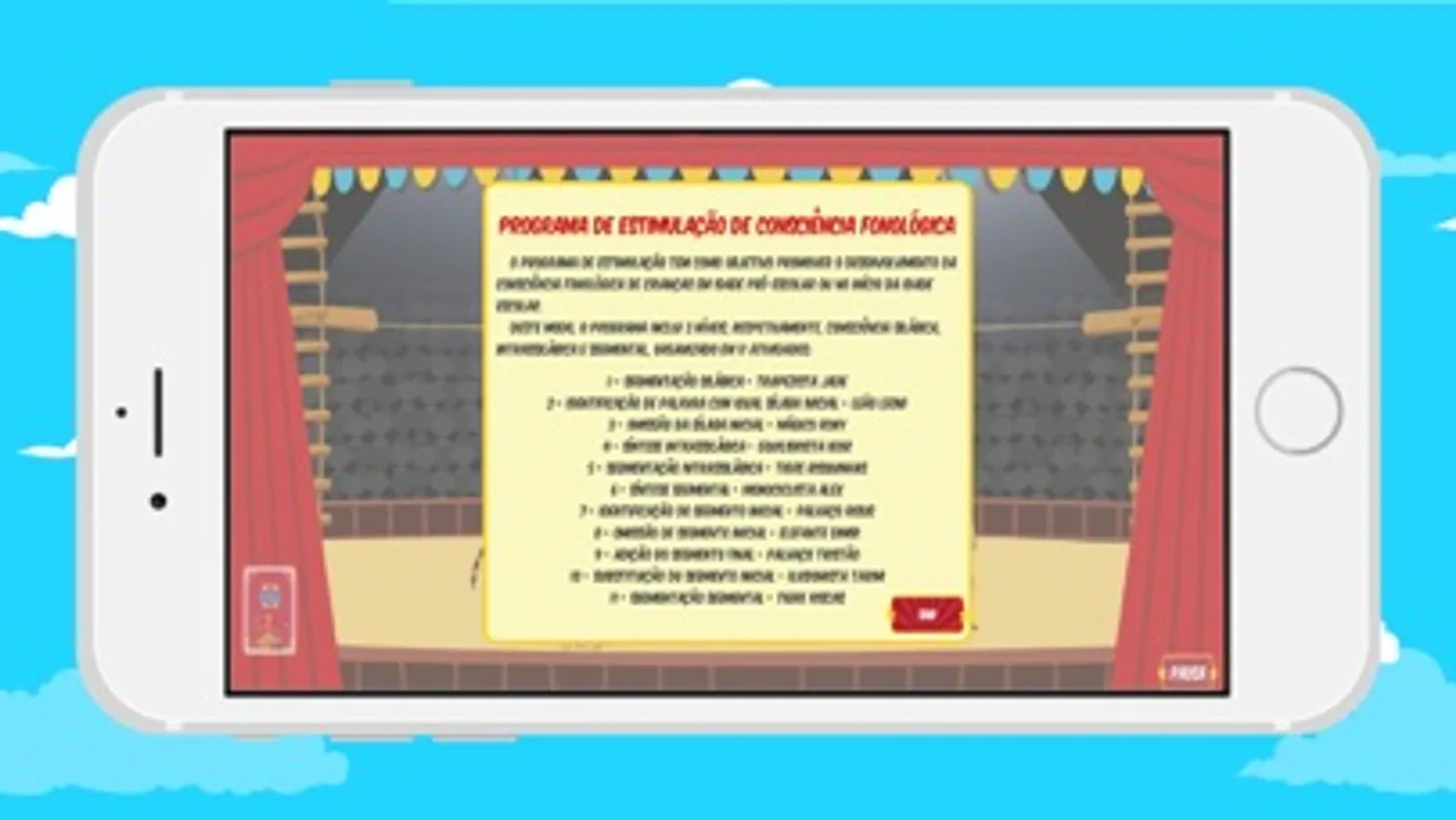 O programa integra as seguintes atividades: segmentação silábica; identificação de palavra com igual sílaba inicial; omissão da sílaba inicial, síntese intrassilábica, segmentação intrassilábica, síntese segmental, identificação do segmento inicial, omissão de segmento inicial, adição do segmento final, substituição do segmento inicial e segmentação segmental. Em cada atividade são descritos o objetivo, os materiais, os procedimentos, as instruções, o feedback para a criança e a recompensa. Todas as ilustrações foram especificamente desenvolvidas para este programa, por dois designers.