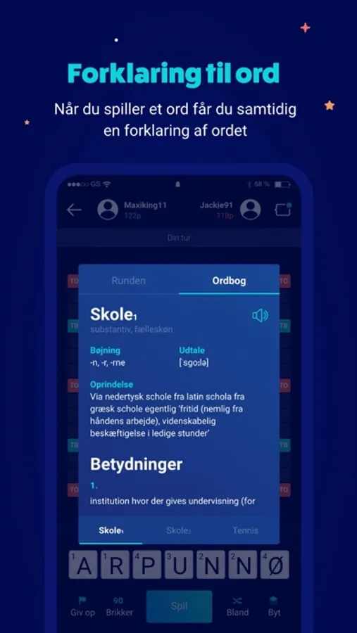 Derudover anvender Tile Travel Den Danske Ordbog til at knytte en forklaring til de ord du spiller.