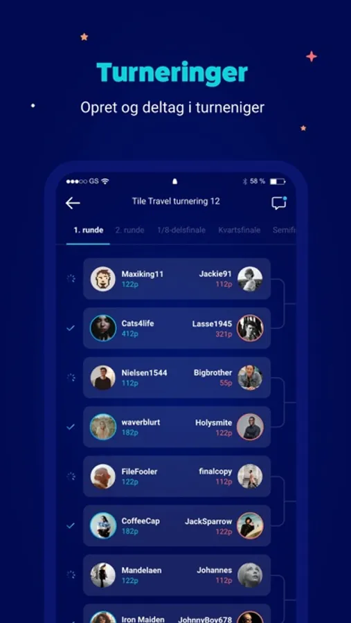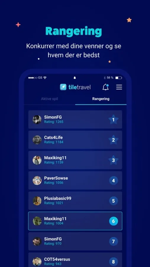 Bliv en del af fællesskabet - Tile Travel er både sjovt og lærerigt. Opret og deltag i turneringer, chat med hinanden og se dine venners rangering.