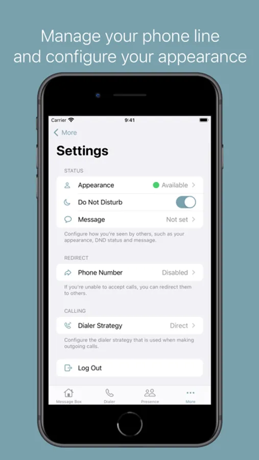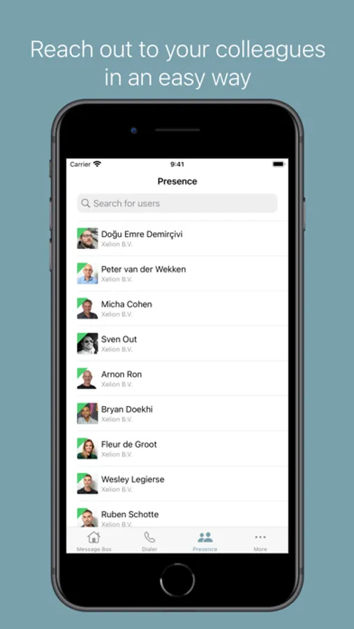 The app provides access to the messageboxes, user presence and other Xelion data.