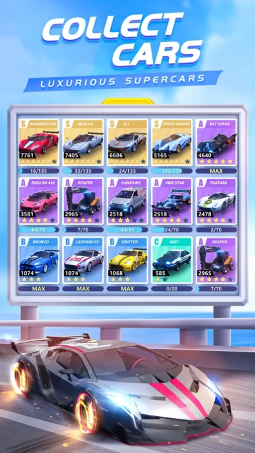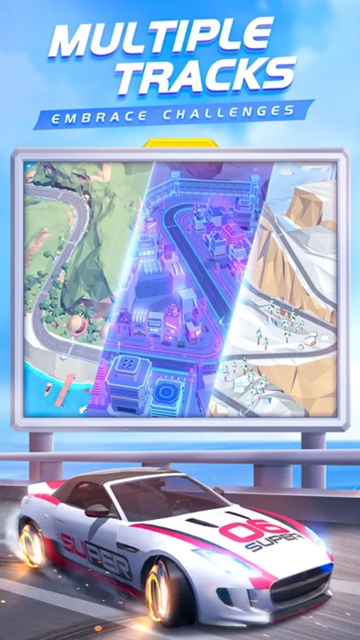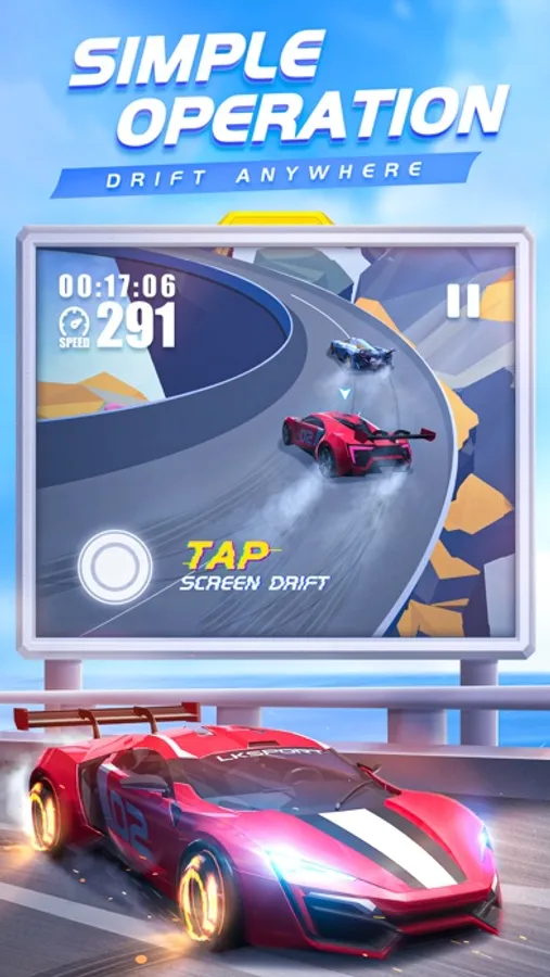 Compete with your opponents on the screen and feel the tension of time passing by. In the face of different road management, upgrading and adjusting the car is your way to win.