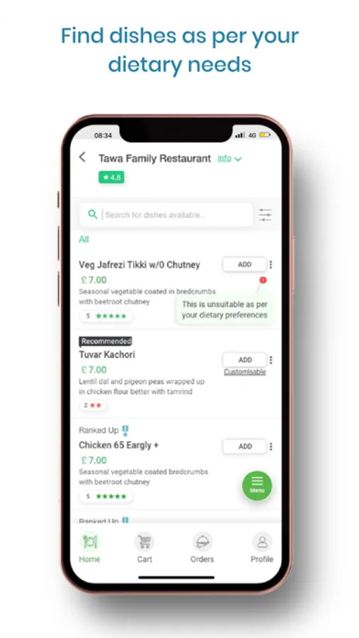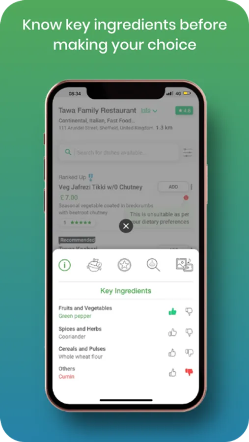 Foodbud lets you discover new food based on your taste and dietary preferences and find ingredient information of dishes you eat at our partner restaurants