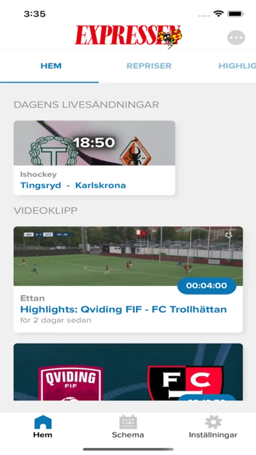 Expressen Livesport är en streamningtjänst som visar alla matcher i SSL, fotbollsligan Ettan, alla matcher i Elitettan, matcher från division 1 dam och division 2 och 3 herr. Löpande fylls det på med massor av andra matcher och tävlingar från andra idrotter och serier. Se matcherna live eller i efterhand