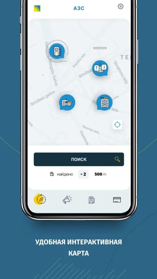 • найти на карте ближайшую АЗС или центр обслуживания клиентов, проложить маршрут;