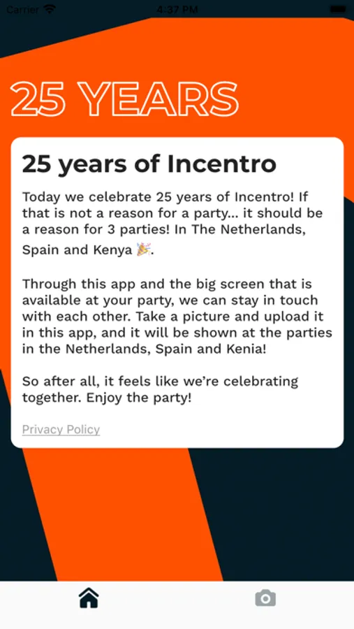 The 25 Years Incentro app enhances the Incentro event experiences around the world. During the events, you can use this app to share pictures with the people around you and the people at other events as well!