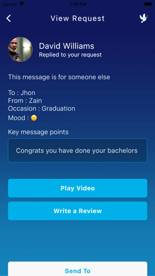 Is an inspirational smart phone video messaging platform. That allows users to receive, request, and or gift a personalized faith based message to a friend or themselves from their favorite Minister, Pastor, Rabbi etc. for a fee. Messages may be created to a mark or celebrate a memorable occasion, such as the birth of a child, Illness, wedding, or promotion. Or even, one may wish to receive a daily spiritual blessing from a pastor or minister. Shout Ouut was conceived to bridge the spiritual divide between those who embrace fellowship and wish to share a piece of their spiritually as a gift to others who may seek spiritual deliverance.