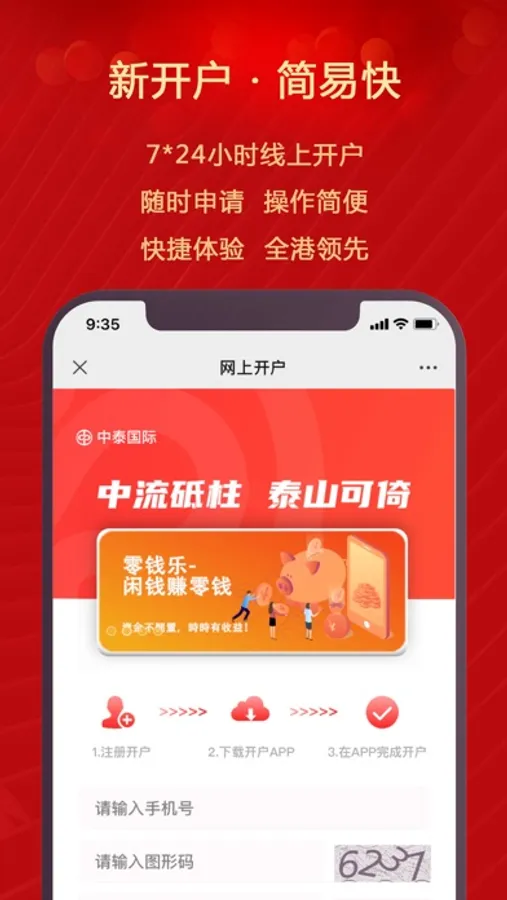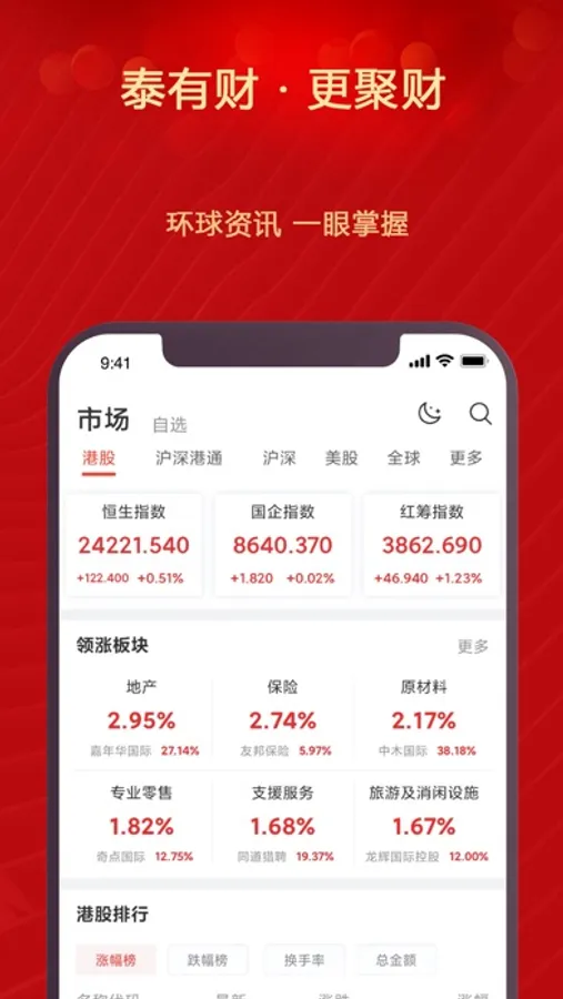 【国资券商,泰山可倚】中泰金融国际有限公司(简称中泰国际),中泰国际凭借香港国际金融中心优势,秉承至诚至善的发展理念,为本地及全球企业、机构、零售及高净值客户提供全方位、多元化金融产品和服务,泰有财为中泰国际专门为海内外投资者全新打造的一款炒股APP,提供完善的港股、美股、A股市场服务。