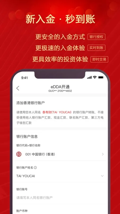 【极速入金】支持银证转账、edda、FPS多种方式入金,即刻到账。